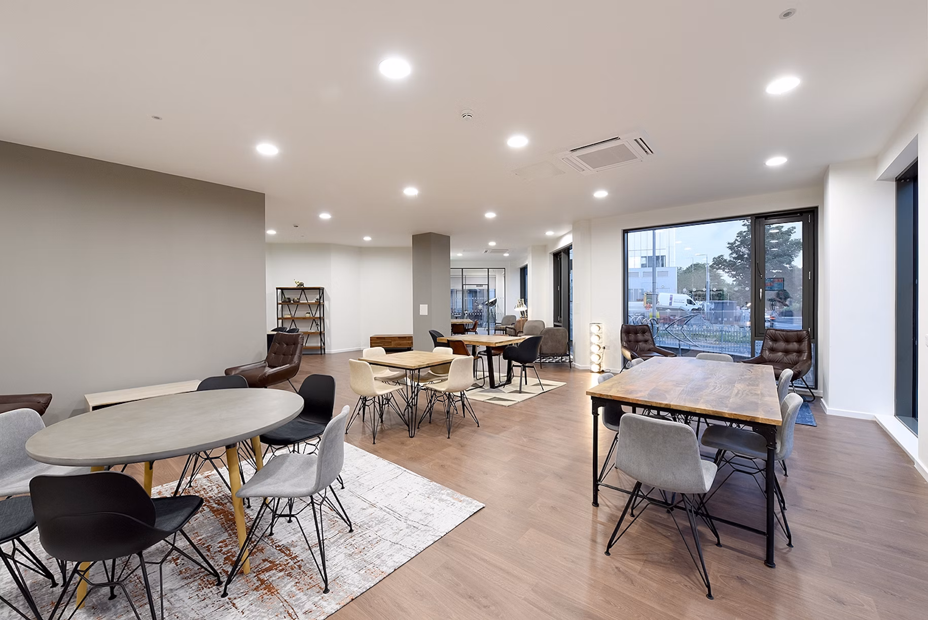 - Communal kitchen and living space with up to 7 en-suite rooms per flat